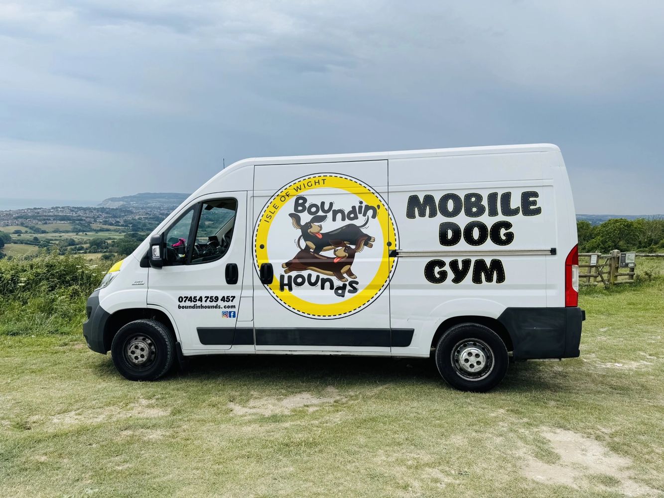 Boundin’ Hounds Mobile Dog Gym is a fully mobile dog-exercise service that travels directly to our customers Island-wide.